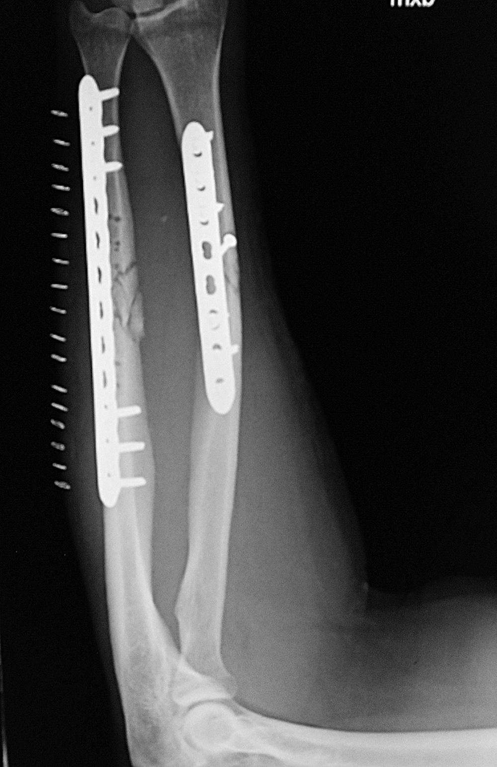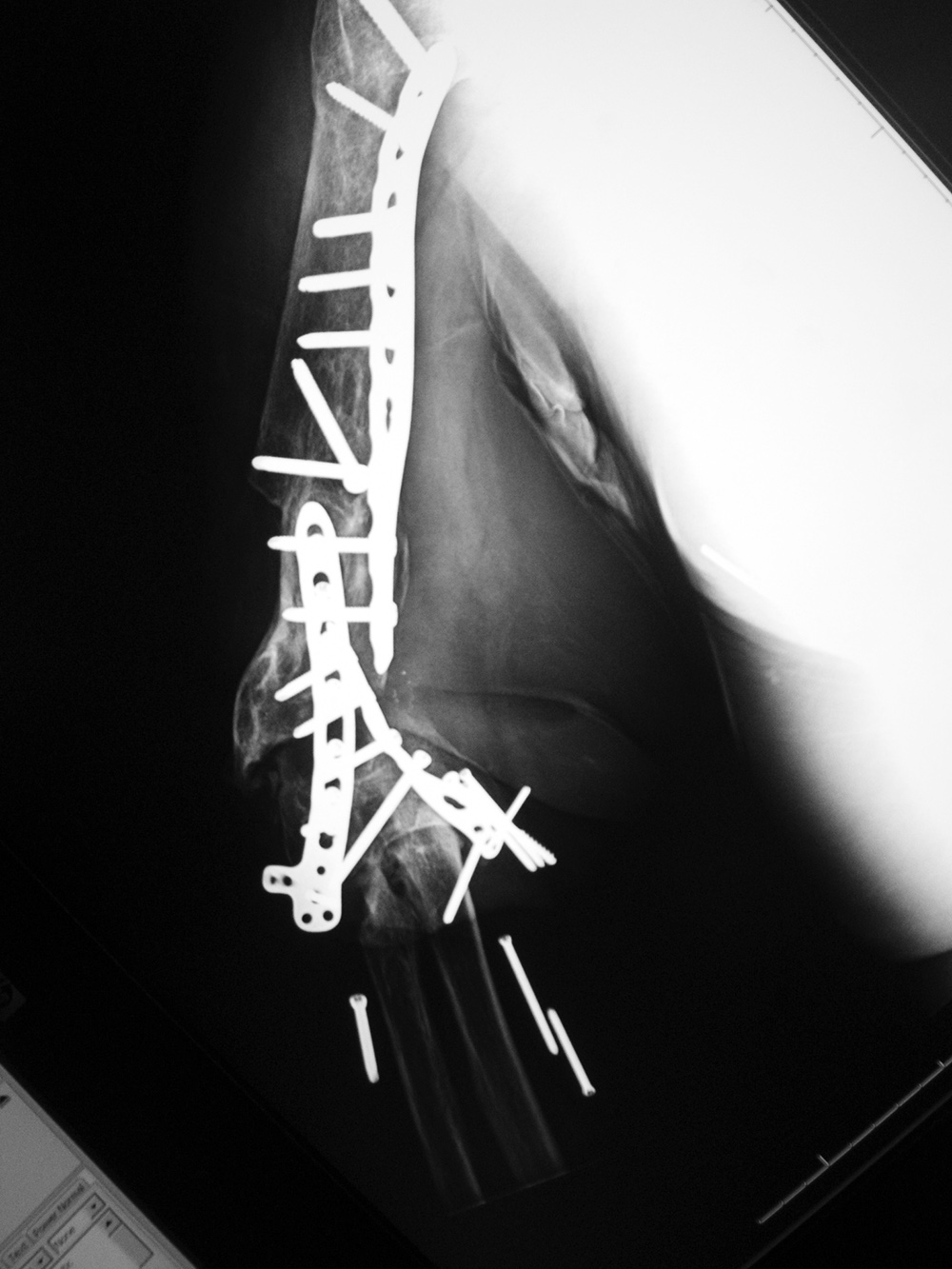 | Right femur periarticular plate breakage and chronic fracture nonunion |