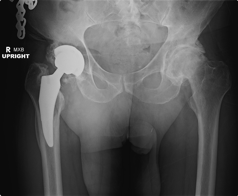 | Metal-on-metal right Hip arthroplasty with heterotrophic bone formation |