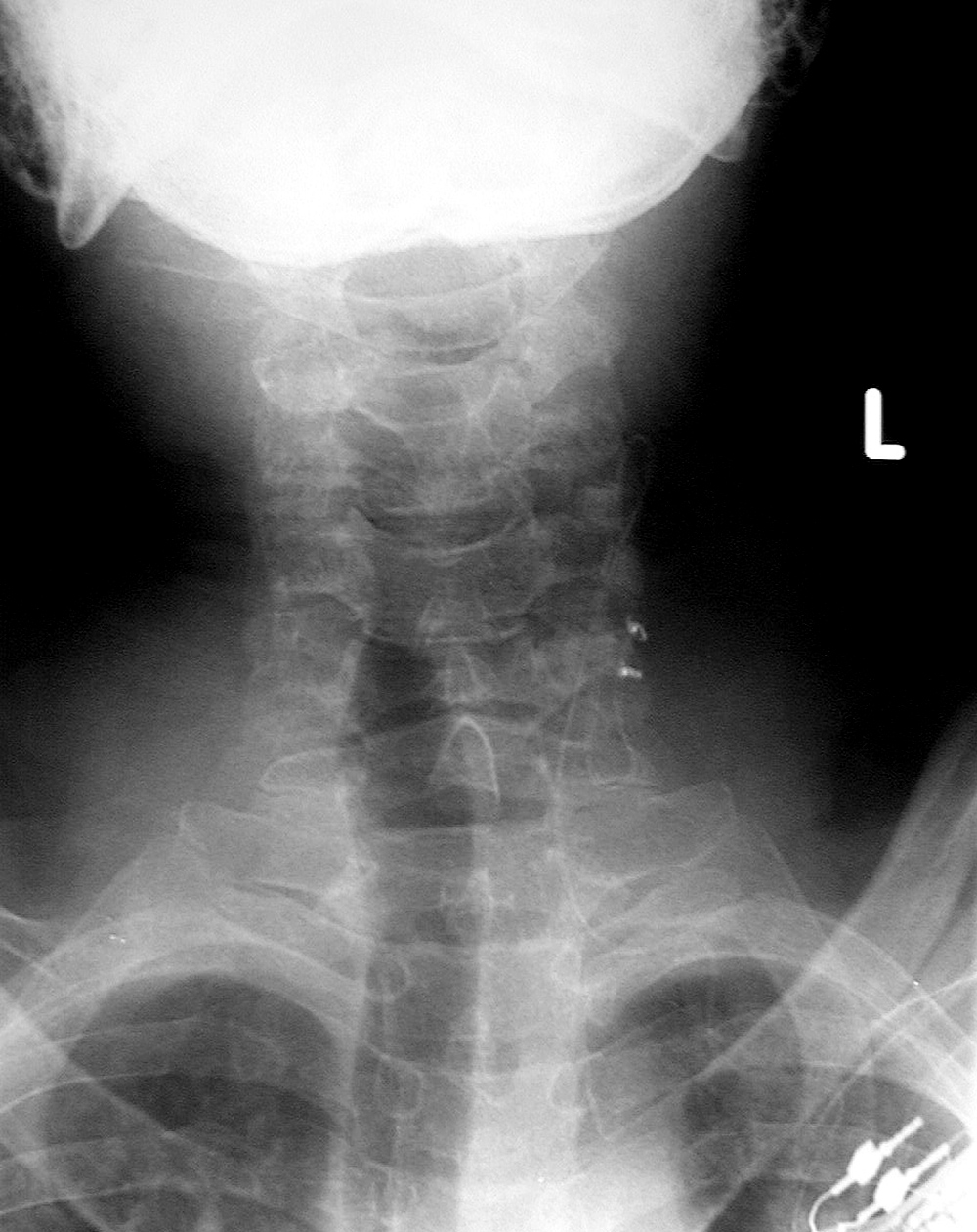 Patient with rheumatoid arthritis and atlantoaxial (C1-C2) subluxation and generalized cervical spine laxity |